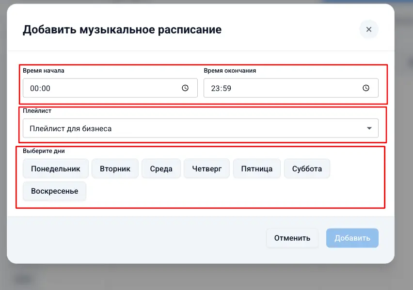 Вы можете задать, какие плейлисты будут играть утром, днём, вечером или ночью.